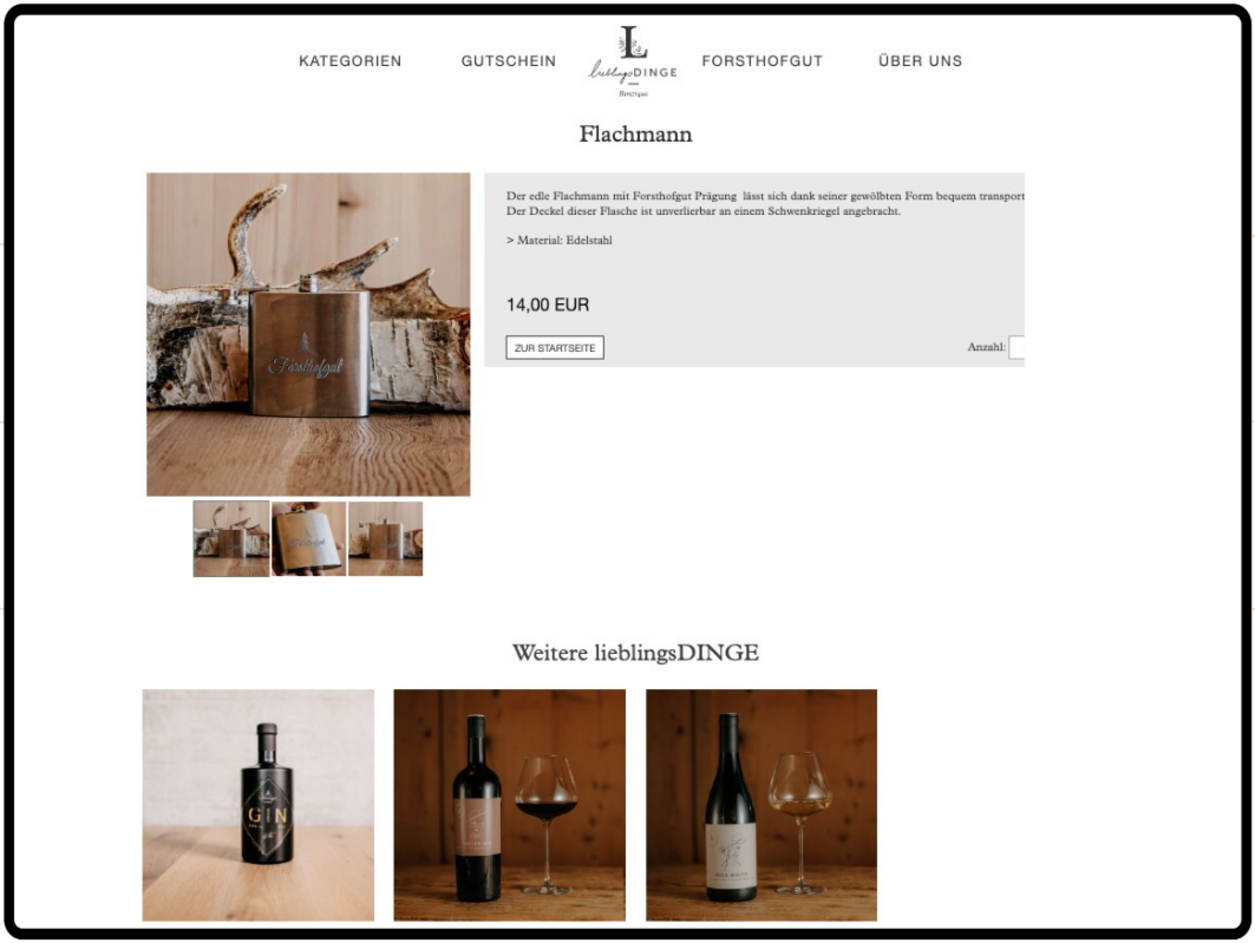 Wir nutzen die Lösungen von incert bereits seit über 10 Jahren. Gestartet haben wir mit dem Gutscheinshop, danach kam das Take-away-System für unser Restaurant Mizumi und das Modul Produktshop für unsere Boutique lieblingsDINGE hinzu. Dort verkaufen wir Genuss-Pakete, Wohnaccessoires oder Spa-Produkte, visuell vollständig im Markendesign. Für alle, die die besondere Forsthofgut-Atmosphäre mit nach Hause nehmen möchten.
