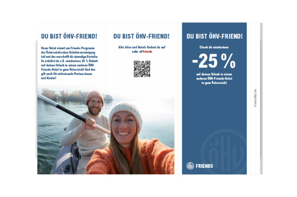 Das Plakat zu ÖHV-Friends in 2 Formaten, die Sie einfach im Unternehmen ausdrucken und in Aufenthaltsräumen oder am Arbeitsplatz aufhängen können. Wir haben für Sie zwei Varianten vorbereitet, in welchen sich die Code-Abholorte unterscheiden: