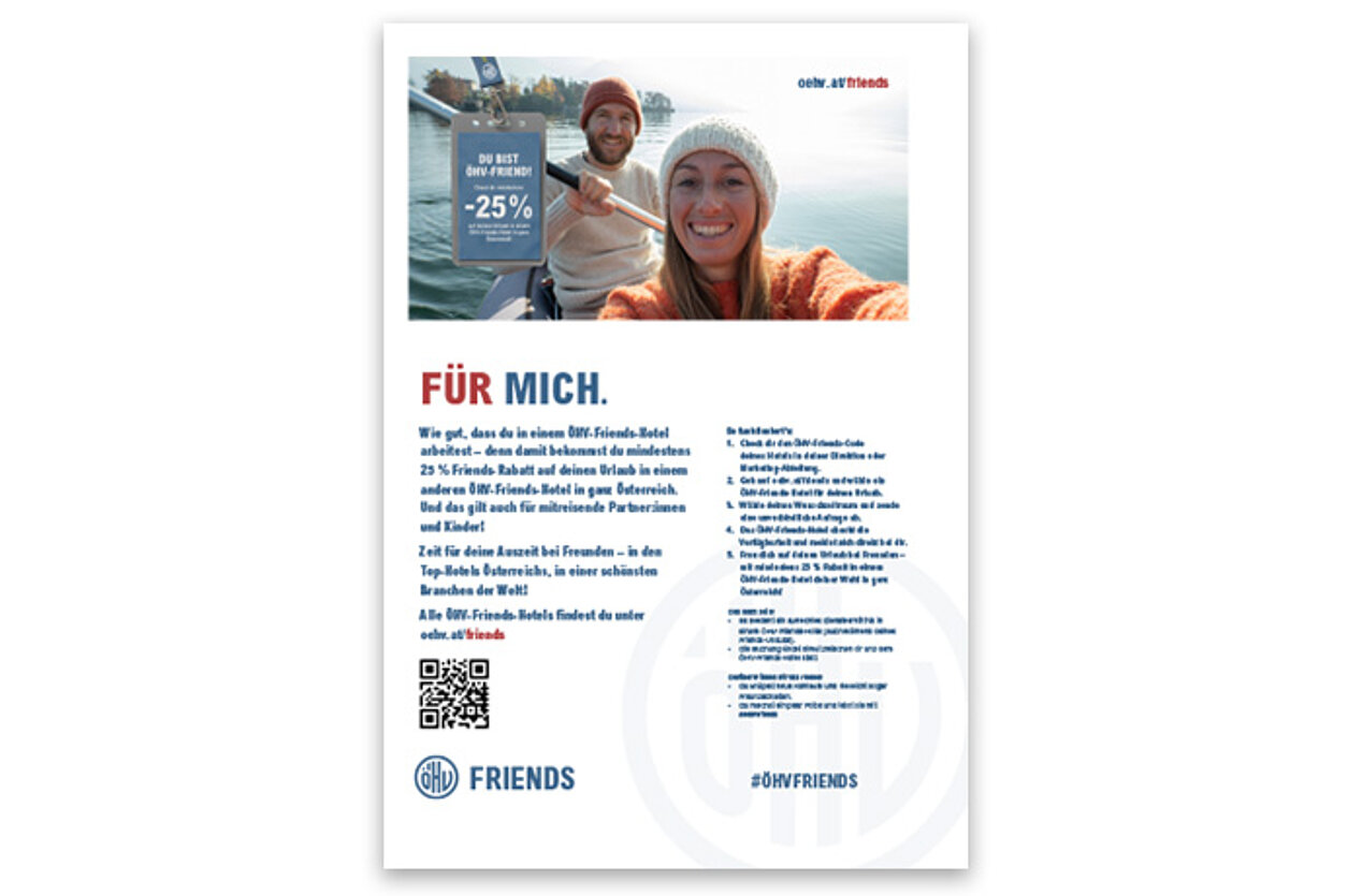 Das Plakat zu ÖHV-Friends in 2 Formaten, die Sie einfach im Unternehmen ausdrucken und in Aufenthaltsräumen oder am Arbeitsplatz aufhängen können. Wir haben für Sie zwei Varianten vorbereitet, in welchen sich die Code-Abholorte unterscheiden: