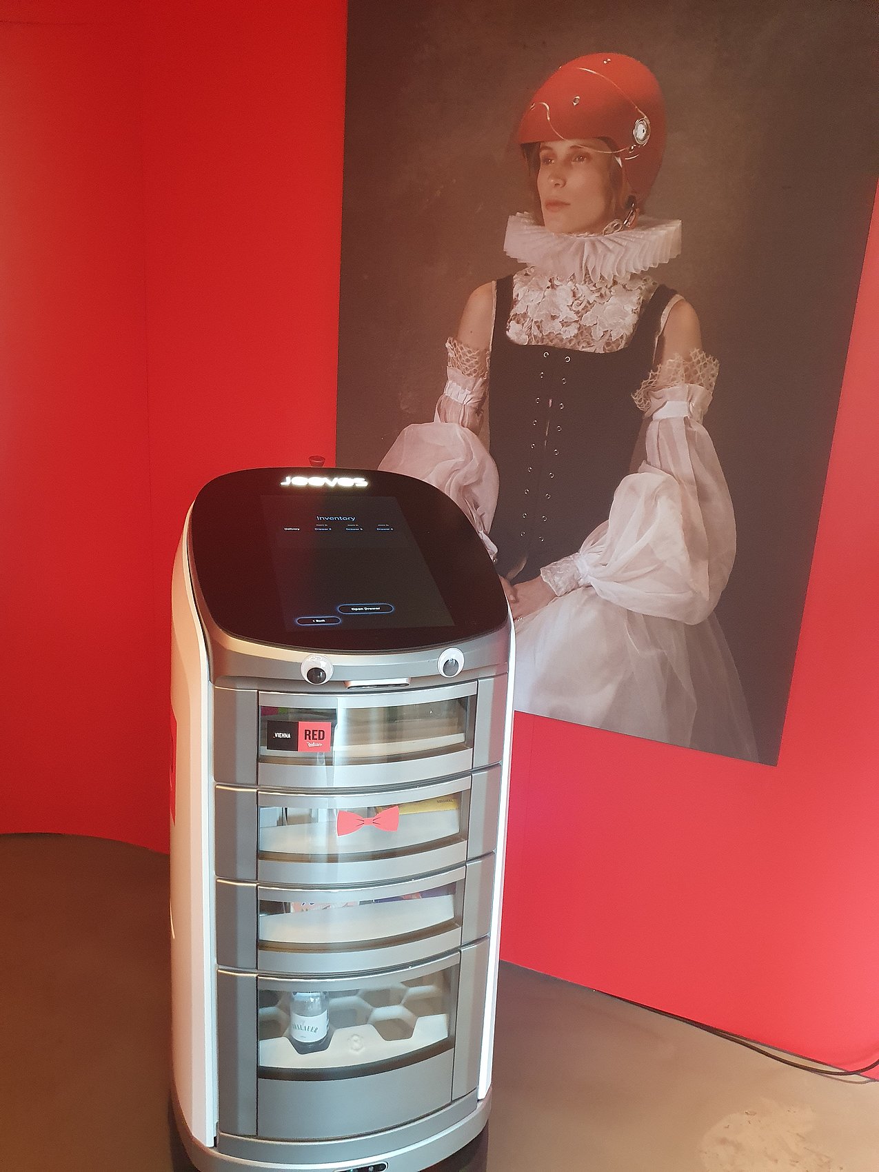 Wir haben den wohl 1. Minibar Roboter in Österreich. Wenn man einen Snack oder ein kühles Getränk möchte, ruft man mit dem roten Zimmertelefon mit Wählscheibe die Nummer 7, und „Jeeves“ fährt von selbst bei der Rezeption los, ruft eigenständig den Lift, fährt vor die Zimmertür und ruft an, wenn er da ist. Über ein Display wählen die Gäste aus und bezahlen. Abgerechnet wird die Konsumation automatisch über Zimmerrechnung und unser Team muss einzelne Minibars nicht laufend auffüllen oder überprüfen, ob Produkte abgelaufen sind. Zusätzlich ist Jeeves noch ein Fun-Faktor und manche Gäste bestellen einfach etwas, nur um ihn einmal in Action zu sehen.