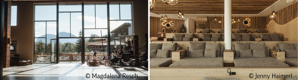 Alle Suiten der Kaiserlodge sind mit hochwertigen Altholzmöbeln und Naturmaterialien wie Loden und Tiroler Holz eingerichtet, weite Fensterfronten öffnen den Blick auf die umliegende Bergwelt und bringen die Natur ins Innere. Jede Unterkunft verfügt über einen überdachten Balkon oder eine Terrasse und bietet ausreichend Rückzugsmöglichkeiten.