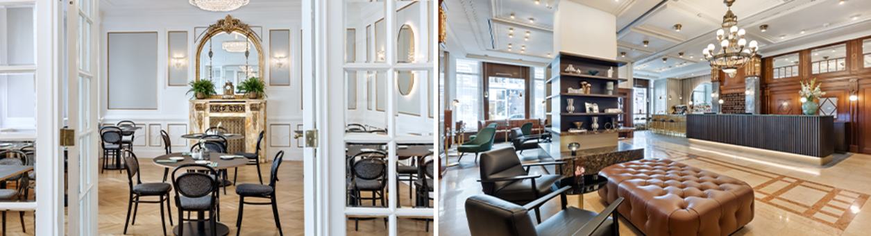 Nach zwei Jahren Renovierung erstrahlt das 1860 errichtete Gebäude im neuen Glanz. „Explore Beauty“ ist das Motto hinter dem hochqualitativen Design, basierend auf viel Holz und mehr als 160 Tonnen feinstem Marmor. Die Farben schwarz und weiß sind dabei eine Referenz an den namensgebenden Amauris-Schmetterling.