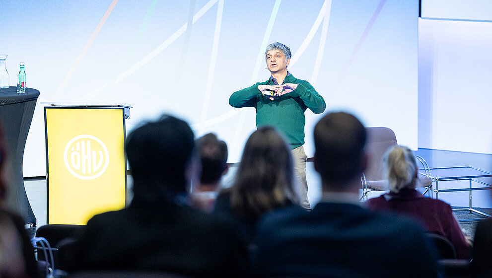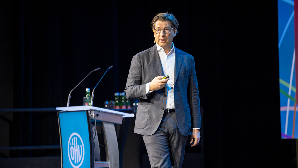 „Von KI bis Krypto: was die Hotellerie morgen prägt“ war Thema des ersten Referats des Tages. Darin setzte sich der Vernetzer und Autor Nikolaus Skene mit aktuellen Umbrüchen auseinander. Dadurch, dass unterschiedliche Disruptionen gleichzeitig stattfinden, fühlen sich viele Menschen überfordert. „Wir sind in einem Zustand der Liminalität, gekennzeichnet durch Unklarheit, Ambiguität und Desorientierung“, formulierte Skene, der mit „Zukunftsreisen“ in Innovationszentren wie Silicon Valley, Dubai oder Hongkong bekannt geworden ist. „Die neue Welt findet in der alten statt“.